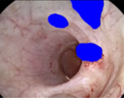 Endoscopic tumor ablation of upper tract urothelial carcinoma (UTUC) allows for tumor control with the benefit of renal preservation but is impacted by intraoperative visibility. We sought to develop a computer vision model for real-time, automated segmentation of UTUC tumors to augment visualization during treatment.